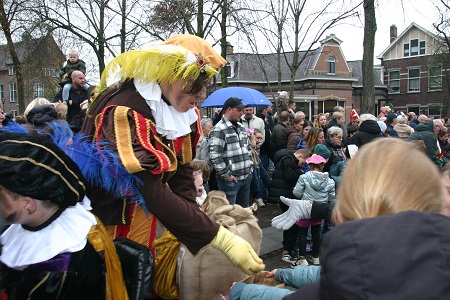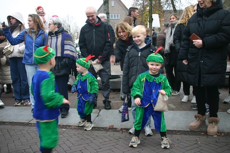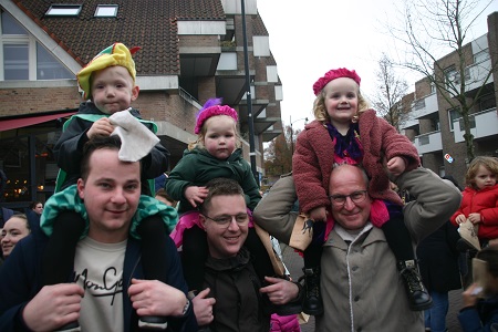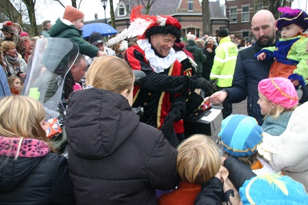 Langs de Tilburgseweg en aan het Kloosterplein staan de kleintjes geduldig te wachten. Goed ingepakt, want het weer is guur. Samen op de foto met de pieten als beloning.