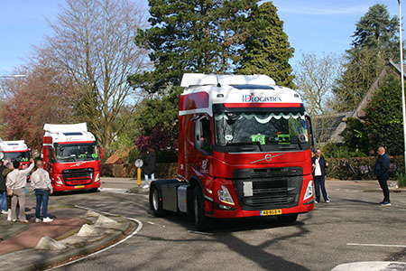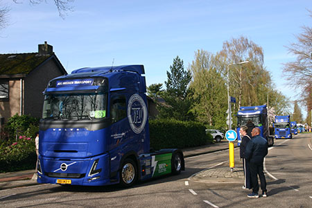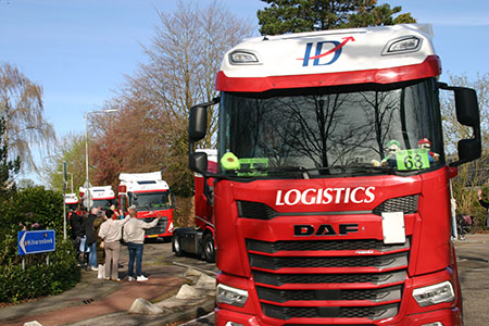 Met hard getoeter en lichtseinen begroeten de vrachtwagens het zwaaiende publiek. Kijk naar het filmpje van de trucktoer.